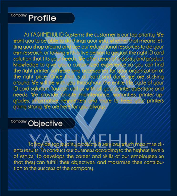 At YASHMEHUL ID Systems the customer is our top priority. We want you to be able to do things your way, whether that means letting you shop around and use our educational resources to do your own research, or talking with a live person to get just the right ID card solution that fits your needs. We offer years of industry and product knowledge to give you a customized experience so you can find the right printer, software and accessories for your organization at the right price.